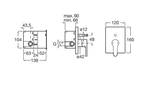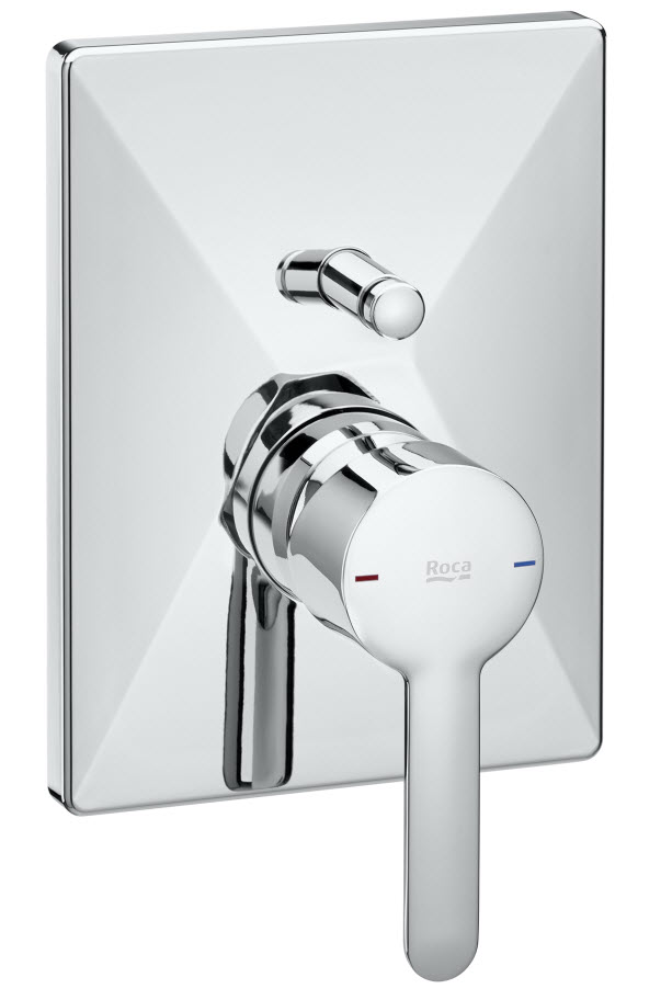 Αναμίκτης εντοιχισμένος με δυο εξόδους σε χρωμέ φινίρισμα και τετράγωνο σχέδιο της σειράς Arola απο την Roca, κιτ κομπλέ με εσωτερικά και εξωτερικά μέρη από την Roca.