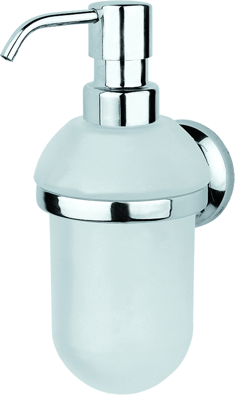 Αξεσουάρ μπάνιου, dispenser για σαπούνι της σειράς Hotelia, επίτοιχο σε χρωμέ χρώμα με γυάλινο ημιδιάφανο δοχείο.