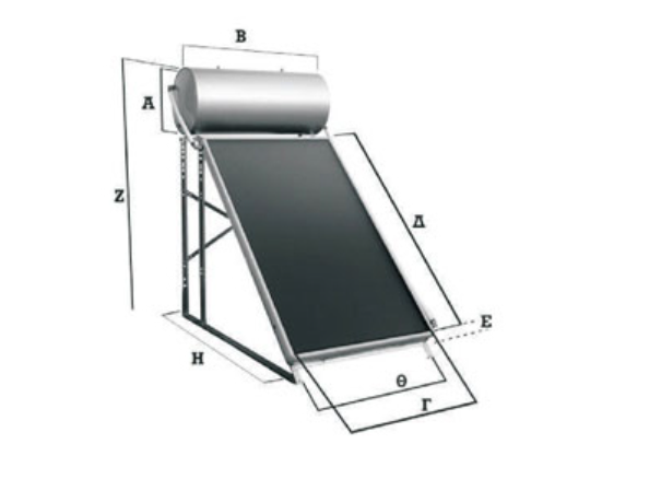 Ηλιακός θερμοσίφωνας, με επίστρωση εμαγιέ Glass, για τοποθέτηση σε κεραμοσκεπή, 150 τριπλής ενέργειας με μονό πάνελ 2 τ.μ.
