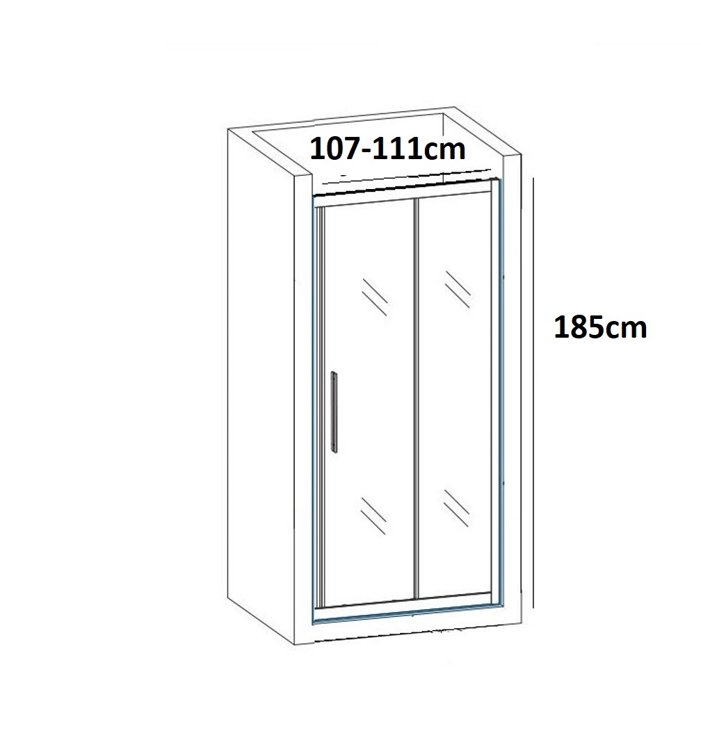 Πόρτα ντουζιέρας Axis Slider 110 με 1 σταθερό & 1 συρόμενο φύλλο για τοποθέτηση από Τοίχο σε Τοίχο (εσοχή). Διάσταση πόρτας 107-111cm, ύψος 185cm και άνοιγμα εισόδου 45cm. Κρύσταλλο ασφαλείας Clear (διαφανές) 6mm με επεξεργασία Clean Glass (κατά των αλάτων).