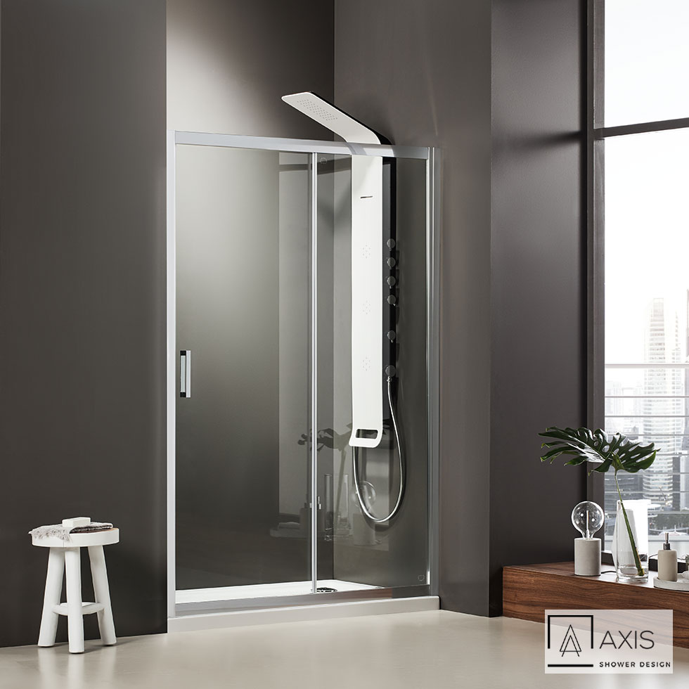 Καμπίνα ίσια Axis Slider πόρτα συρόμενη 110x185cm κρύσταλλο ”Clear Glass” Διάφανο 6mm Χρωμέ με επεξεργασία Clean Glass.