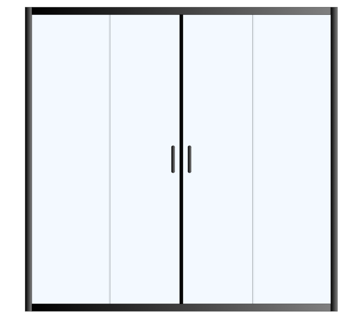 Βαρέως τύπου, υψηλής ποιότητας και αντοχής, με 2 συρόμενες και 2 σταθερές πόρτες, με διάφανο κρύσταλλο 6mm.