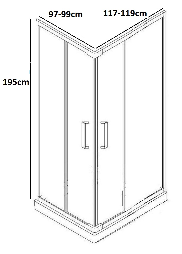 Γωνιακή καμπίνα ντουζιέρας, ασύμμετρη με διάσταση 100x120cm (99-97×117-119) και ύψος 195cm.