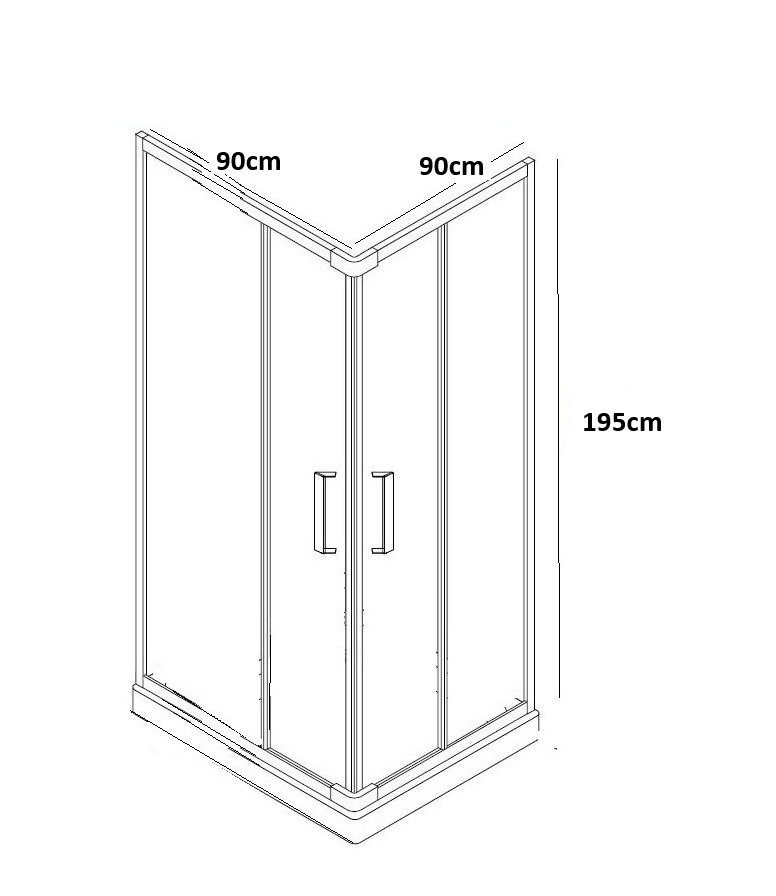 Καμπίνα ντουζιέρας τετράγωνη Swift 90x90x195cm, με συρόμενη διπλή πόρτα, με διάφανο κρύσταλλο 6mm και μαύρο πλαίσιο από τη Bronze.