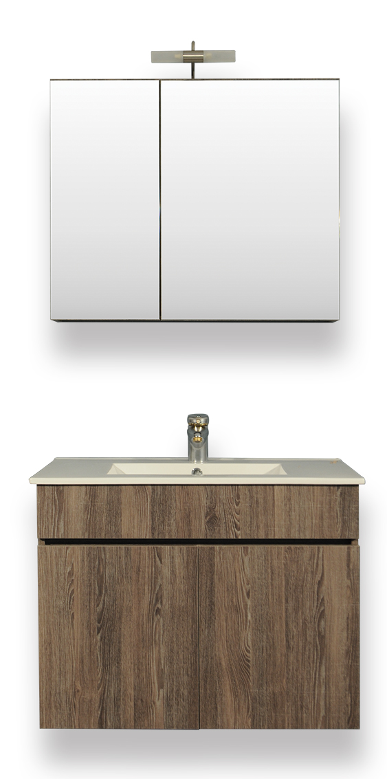 Καθρέπτης μπάνιου 75cm, της συλλογής CARLA, με ένα ντουλάπι και φωτιστικό τύπου απλίκα, σε λευκή γυαλιστερή λάκα.