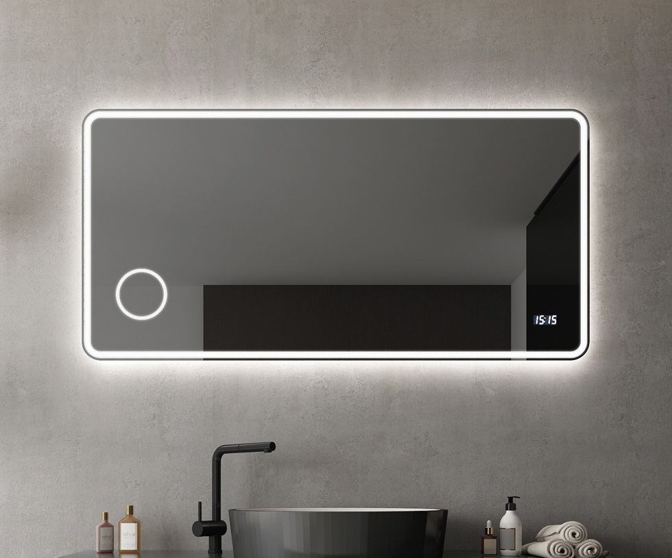 Καθρέπτης Cult 120x80cm Ορθογώνιος με φωτισμό LED extra μεγεθυντικό καθρέπτη και ψηφιακό ρολόι Luminor.
