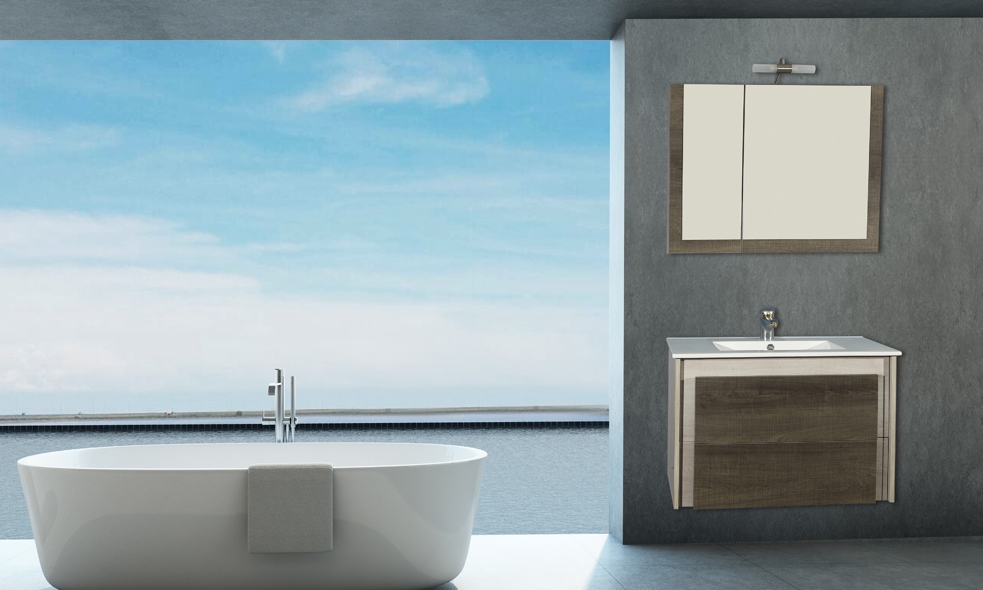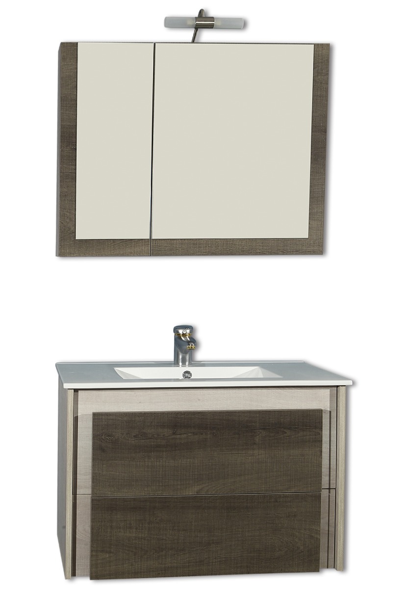 Καθρέπτης μπάνιου 80cm, της συλλογής Quattro, με φωτιστικό τύπου απλίκα και δυο ντουλάπια