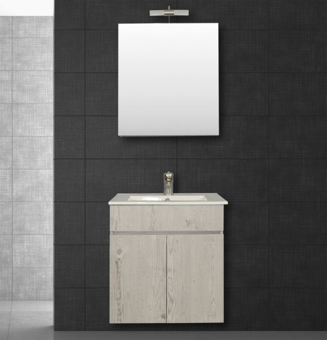Καθρέπτης μπάνιου 60cm, της συλλογής ΚΑΡΛΑ, με ένα ντουλάπι και φωτιστικό τύπου απλίκα, σε μπεζ απόχρωση glossy (κωδ.6116).