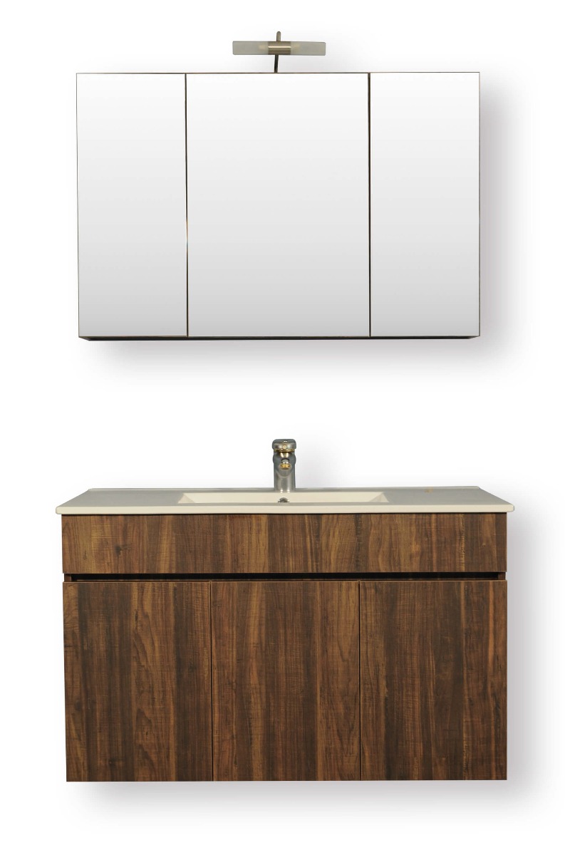 Καθρέπτης μπάνιου 90cm, της συλλογής ΚΑΡΛΑ, με τρία ντουλάπια και φωτιστικό τύπου απλίκα σε γκρι απόχρωση και εφέ τσιμέντου (κωδ.523).