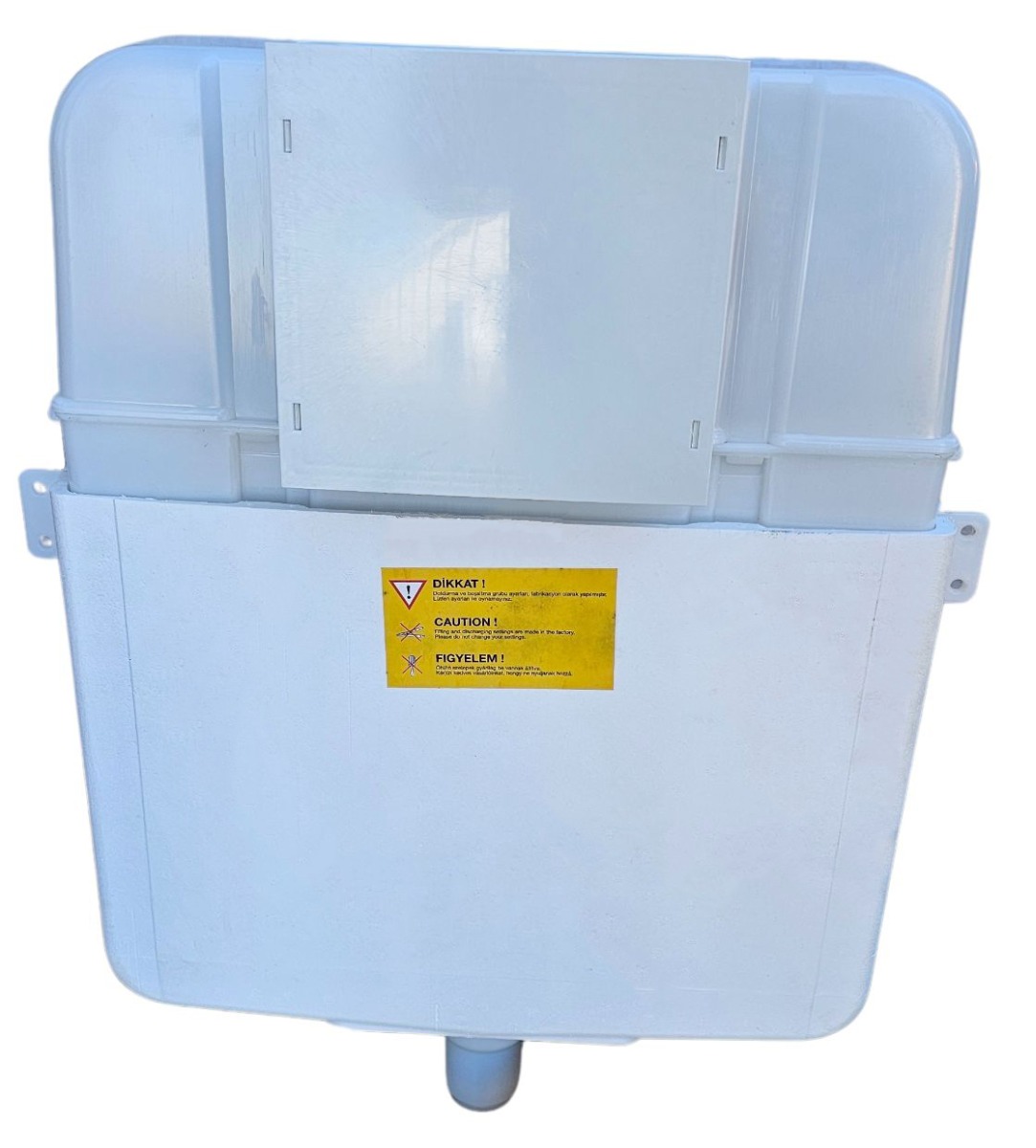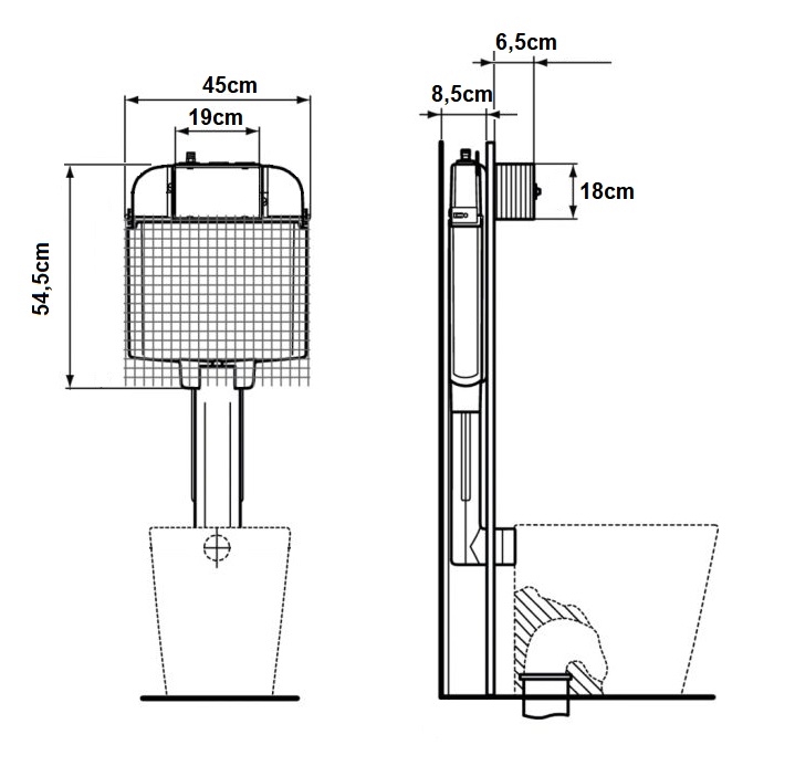 Καζανάκι εντοιχισμένο επιδαπέδιας λεκάνης με πάχος 8,5cm με χρωμέ πλακέτα διπλής έκπλυσης.