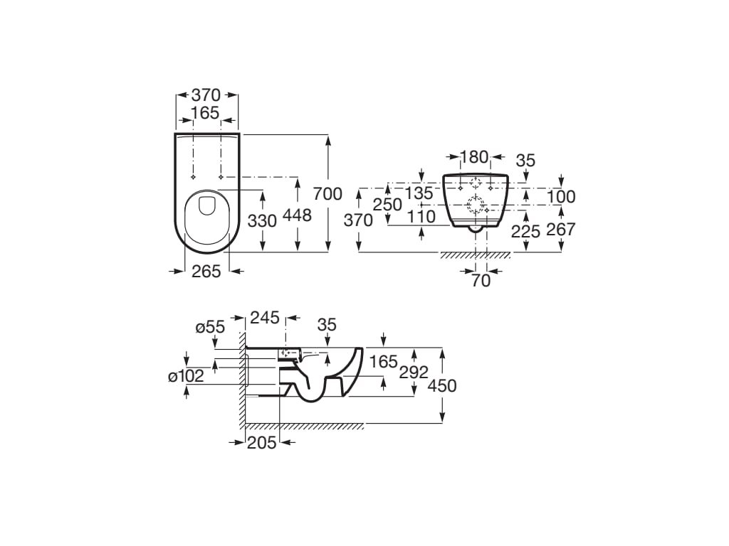 Κρεμαστή λεκάνη Αccess, λευκής πορσελάνης, κατάλληλη για επίτοιχη τοποθέτηση με τεχνολογία έκπλυσης rimless από την Roca.