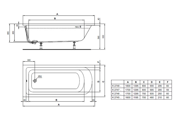 Μπανιέρα Hotline ορθογώνια, διαστάσεων 170 x 75 cm, εντοιχιζόμενης εγκατάσης ή εγκατάστασης με πάνελ.