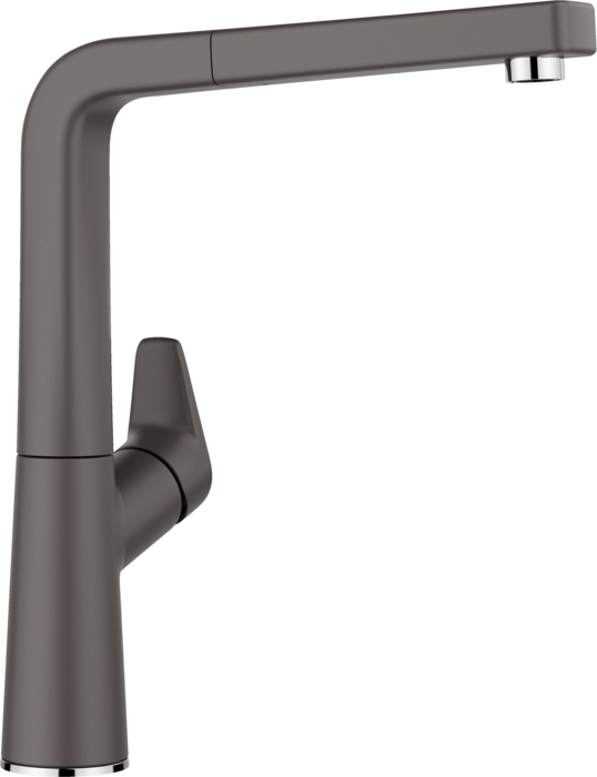 Μπαταρία νεροχύτη κουζίνας της σειράς Avona-S με αποσπώμενο ντουζάκι και πόμολο δεξιά σε χρώμα rock grey από την Blanco.