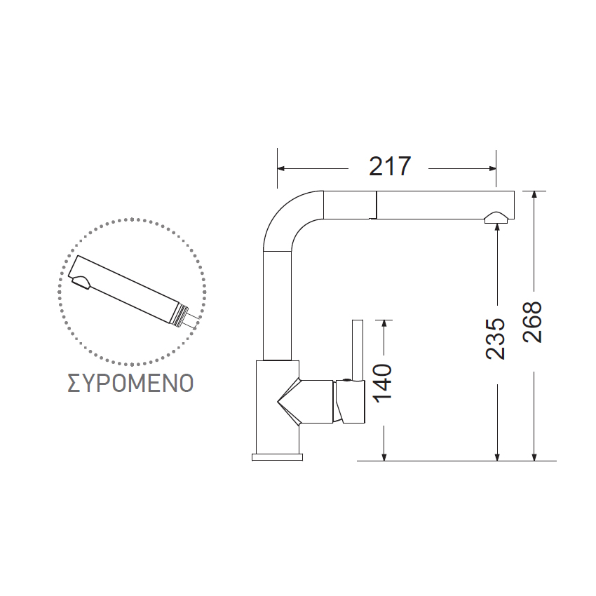 Ορειχάλκινη μπαταρία νεροχύτη επικαθήμενη με περιστρεφόμενο ρουξούνι και συρόμενο ντους.