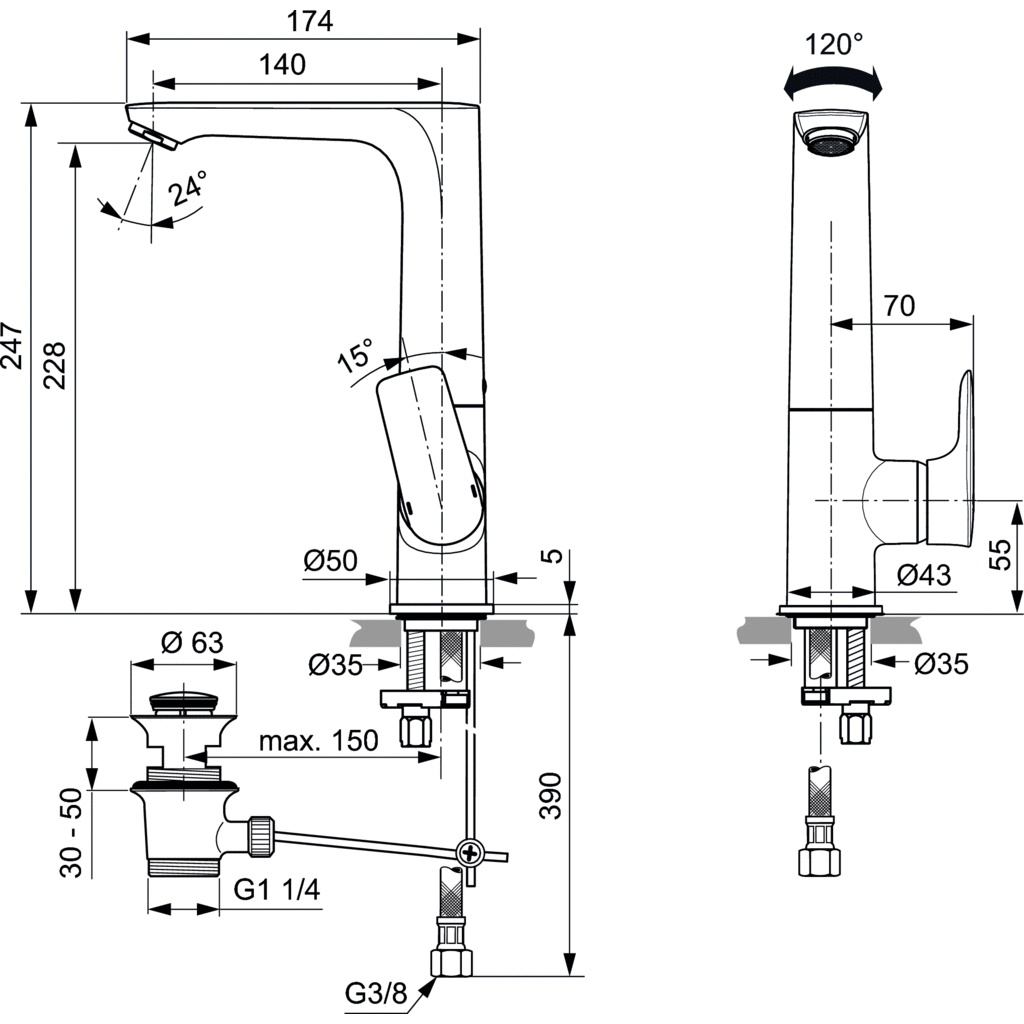 *Περιλαμβάνει βαλβίδα αυτόματη (pop up).