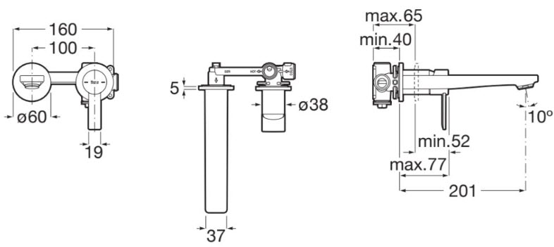 Μπαταρία Νιπτήρος Εντοιχιζόμενη Targa σε Balck Mat φινίρισμα απο την Roca.