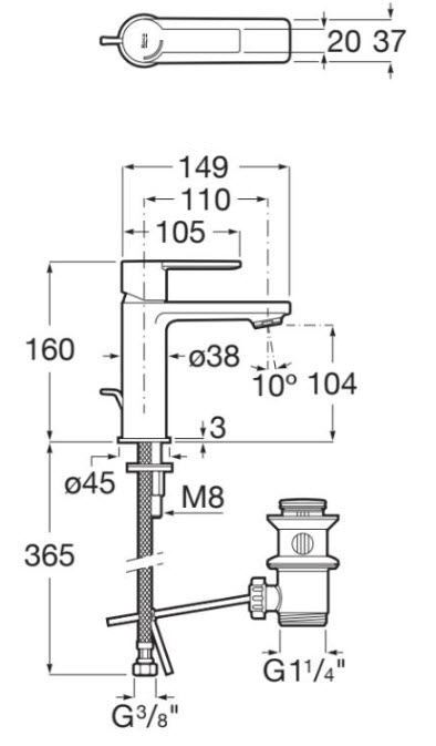 *Η μπαταρία διαθέτει σπιράλ σύνδεσης 3/8″. Αν η υδραυλική εγκατάσταση είναι 1/2″, απαραίτητο το ρακόρ μετατροπής 4003010001 ή διακόπτη 3/8″.