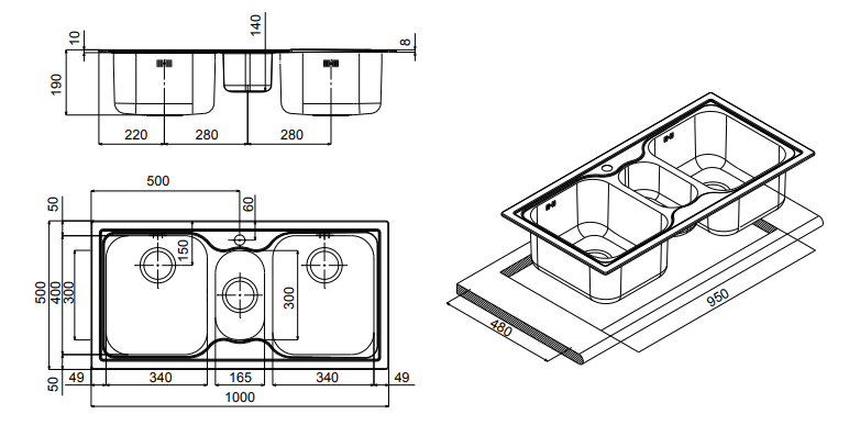 100 | 1000×500 | 340x400x190 | NAI | Λείος |