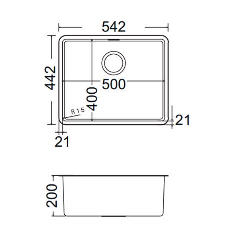 Υποκαθήμενος Νεροχύτης Ανοξείδωτος Apell FEM50 54,2×44,2cm Λείος.