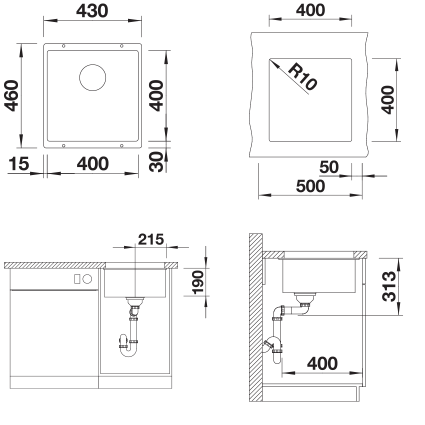 Νεροχύτης γρανίτη 43x46cm Subline 400U Blanco Jasmine.