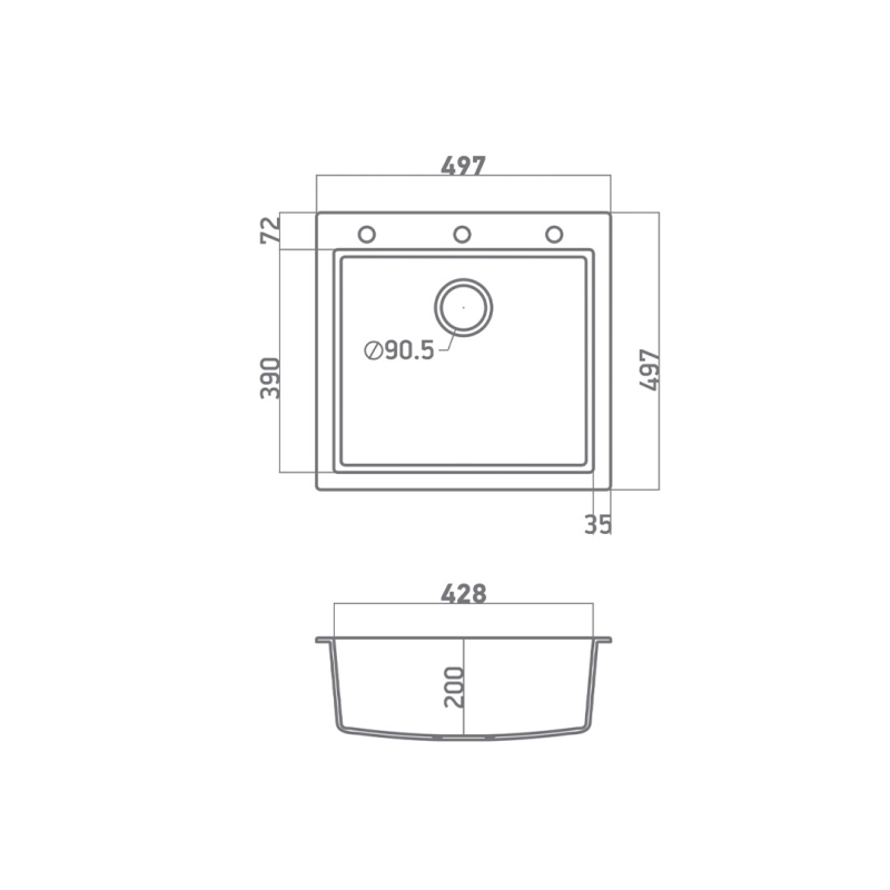 Ένθετος νεροχύτης κουζίνας από γρανίτη της σειράς Ultra Granite 816 50x50cm με 1 γούρνα σε χρώμα Bianco από την Sanitec.