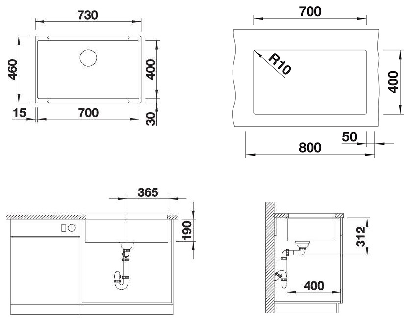 Υποκαθήμενος νεροχύτης από γρανίτη με 1 γούρνα, για ερμάριο 80cm.