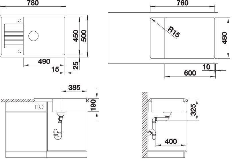 Συμπεριλαμβάνονται βαλβίδα και σιφόν ειδικά σχεδιασμένα για να αφήνουν διαθέσιμο περισσότερο χώρο κάτω από τον νεροχύτη και κλιπς εντοιχισμού για τοποθέτηση σε πάγκους οποιουδήποτε πάχους