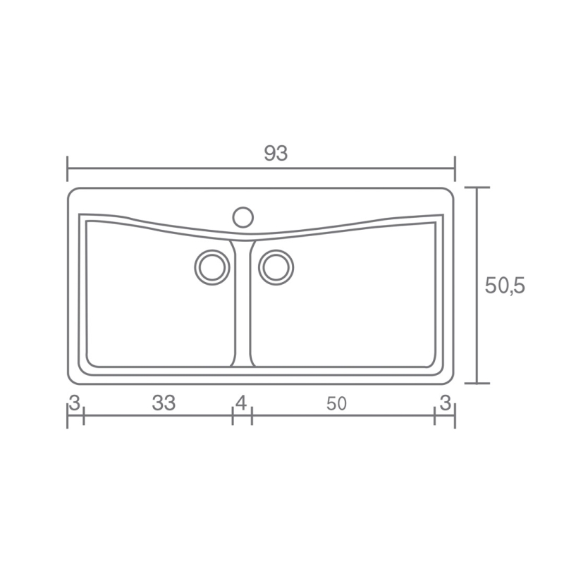 Ένθετος νεροχύτης κουζίνας από συνθετικό γρανίτη της σειράς Classic 326 93x51cm με 2 γούρνες σε χρώμα Λευκό 00, από τη Sanitec.