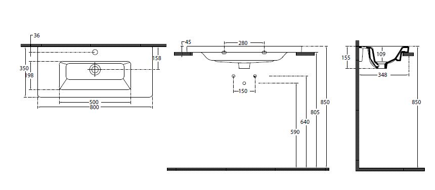 Νιπτήρας Urban ένθετος σε ορθογώνια διάσταση 80x35cm σε λευκό γυαλιστερό χρώμα της Bianco Ceramica.