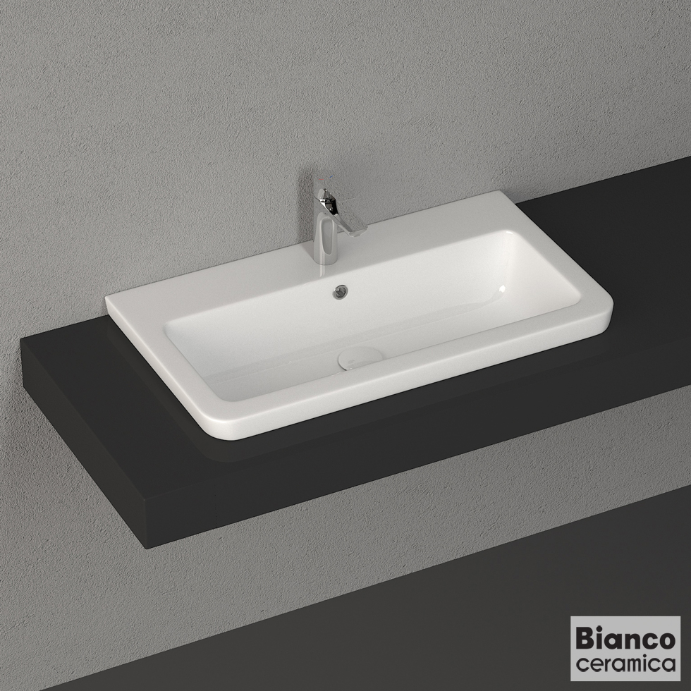 Νιπτήρας πορσελάνης για ένθετη ή επικαθήμενη τοποθέτηση σε διάσταση 80x35cm και λευκό γυαλιστερό χρώμα της Bianco Ceramica.