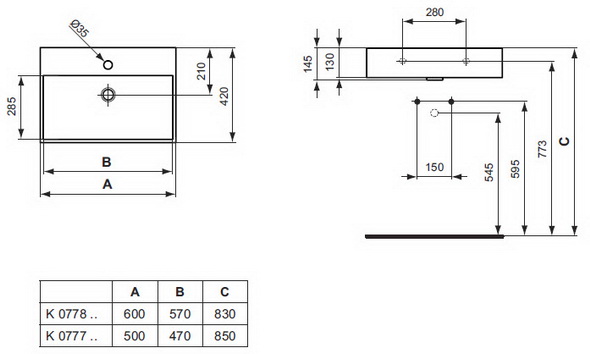 Strada νιπτήρας 50 x 42 cm, 1 οπής ορθογώνιος τοίχου/ κολώνας / πάγκου ,σε λευκό χρώμα από την Ideal Standard.