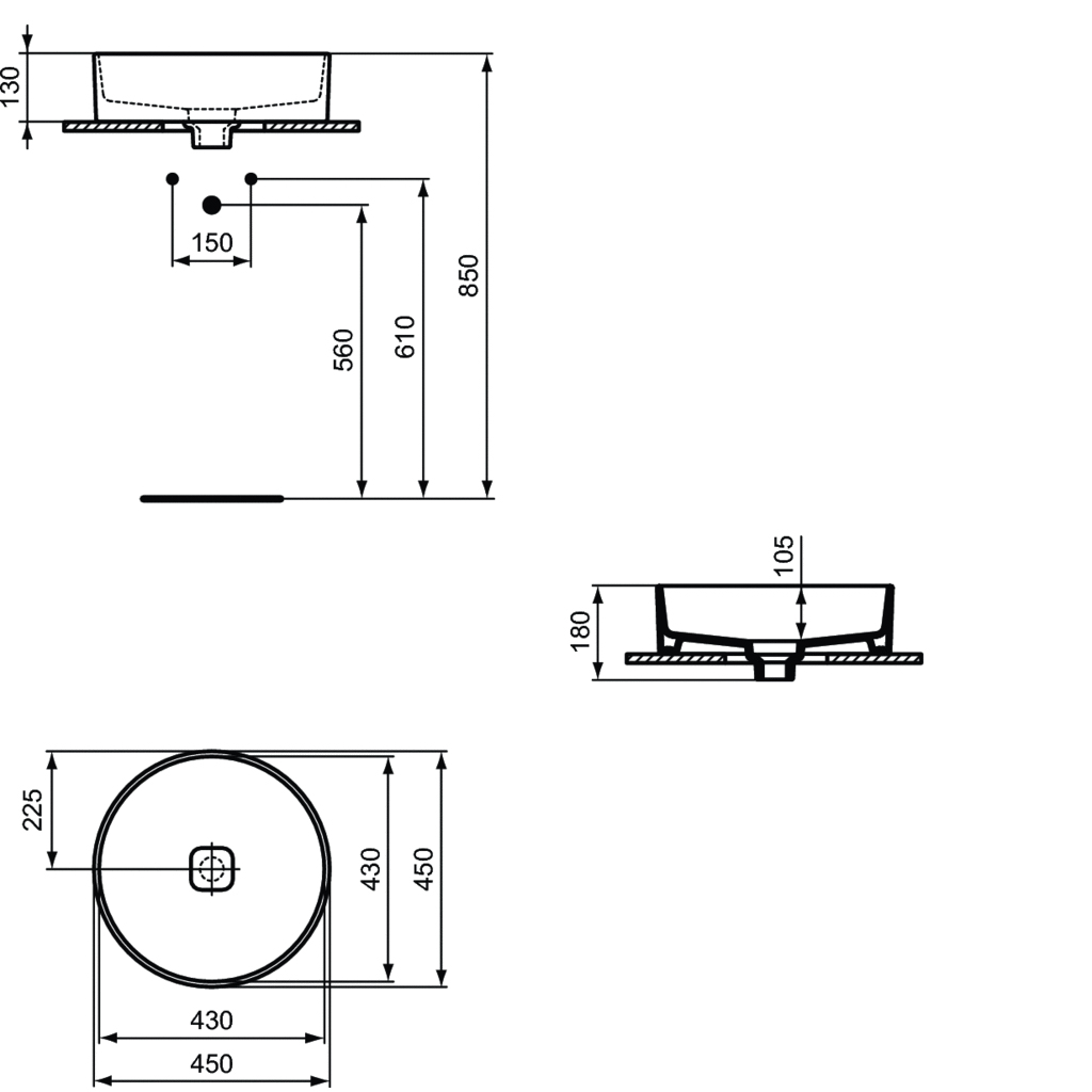 Νιπτήρας Strada II ελεύθερης τοποθέτησης Φ45 λευκός Ideal Standard.