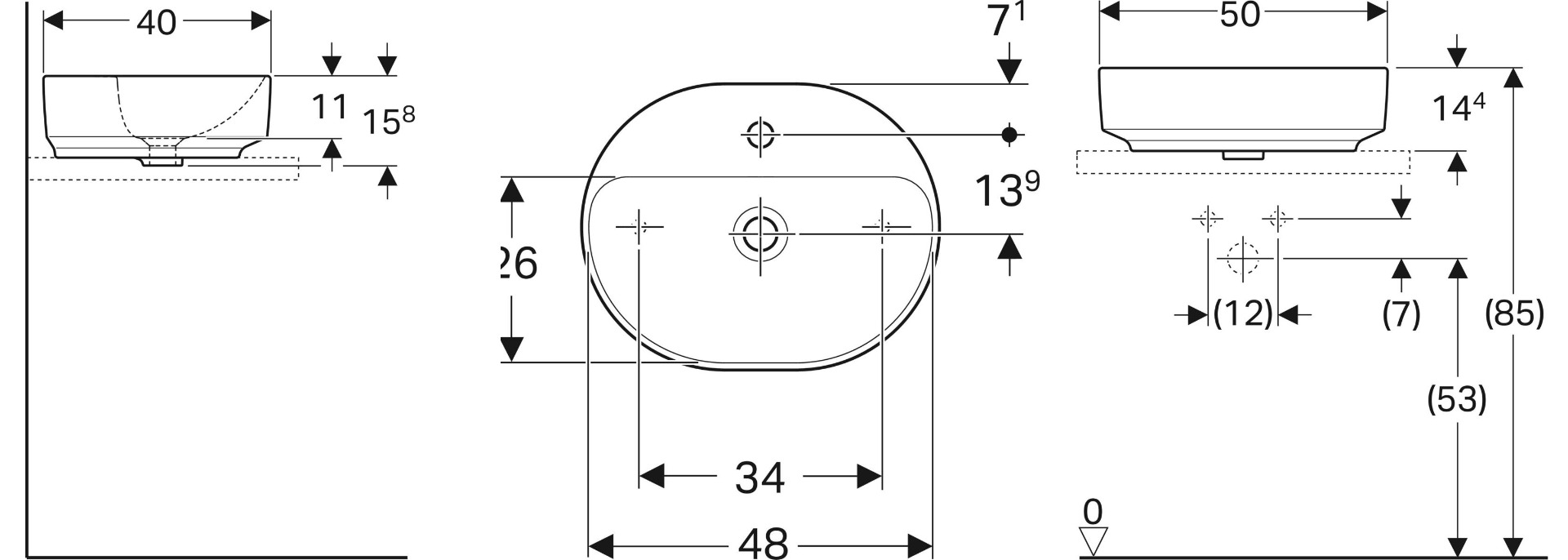 Νιπτήρας 50x40cm VariForm ελεύθερης τοποθέτησης με οπή χωρίς υπερχείλιση Geberit.