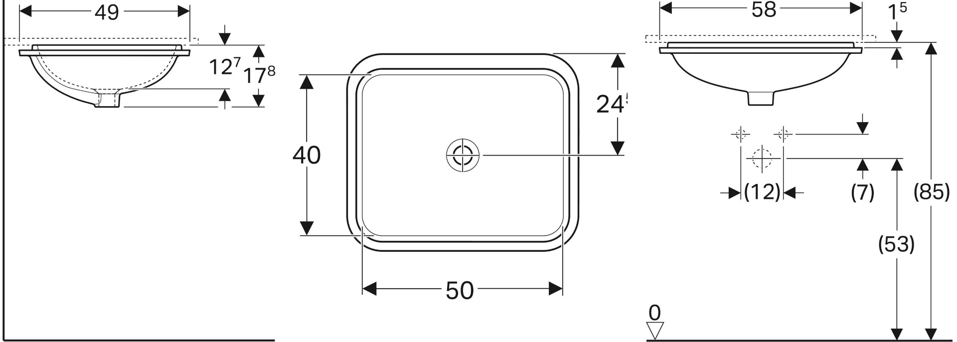 Υποκαθήμενος ορθογώνιος νιπτήρας 58x49cm, της σειράς VariForm, χωρίς οπή με υπερχείλιση, από την Geberit.