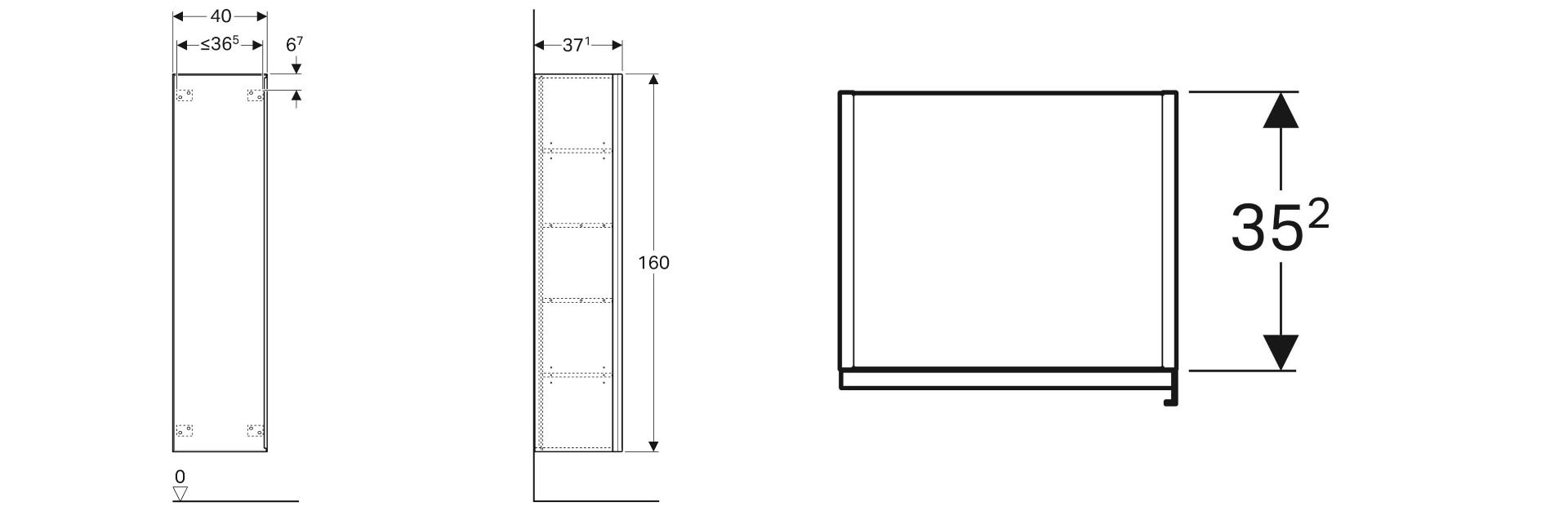 Ντουλάπα μπάνιου 40x160cm Citterio κρεμαστή χρώμα χρώμα μαυρο γυαλί-καφέ δρυς Geberit.
