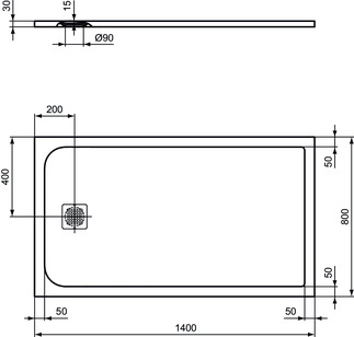 Ντουζιέρα ορθογώνια 140x80cm, σε γκρι χρώμα Ultra Flat απο τεχνητή πέτρα ορθογώνια ύψους 3 cm, σε