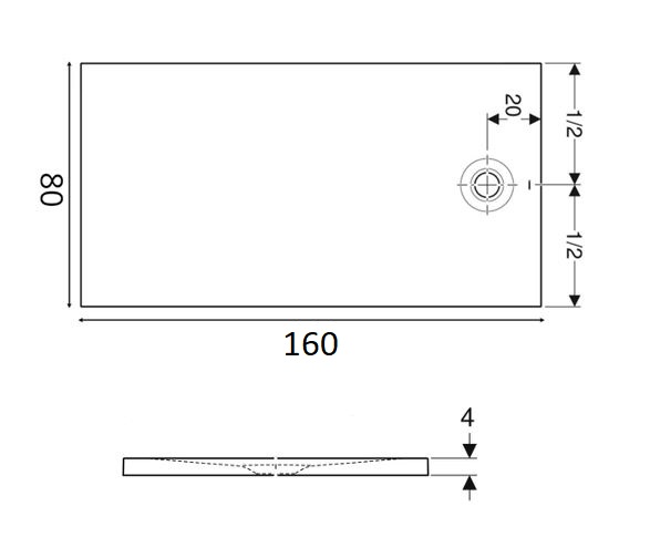Ορθογώνια ντουζιέρα Olona από τεχνητή πέτρα ρητίνης σε λευκό χρώμα, ύψους 4 cm, σε διάσταση 160x80cm από την Geberit.