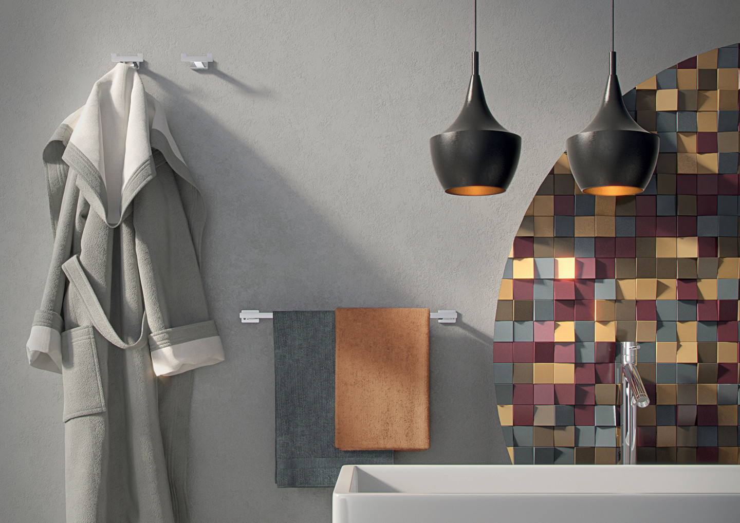 Πετσετοκρεμάστρα μονή από ανοξείδωτο ατσάλο της σειράς Atena 4421 60cm. Με τετράγωνες λεπτομέρειες σε χρωμέ γυαλιστερό φινίρισμα.
