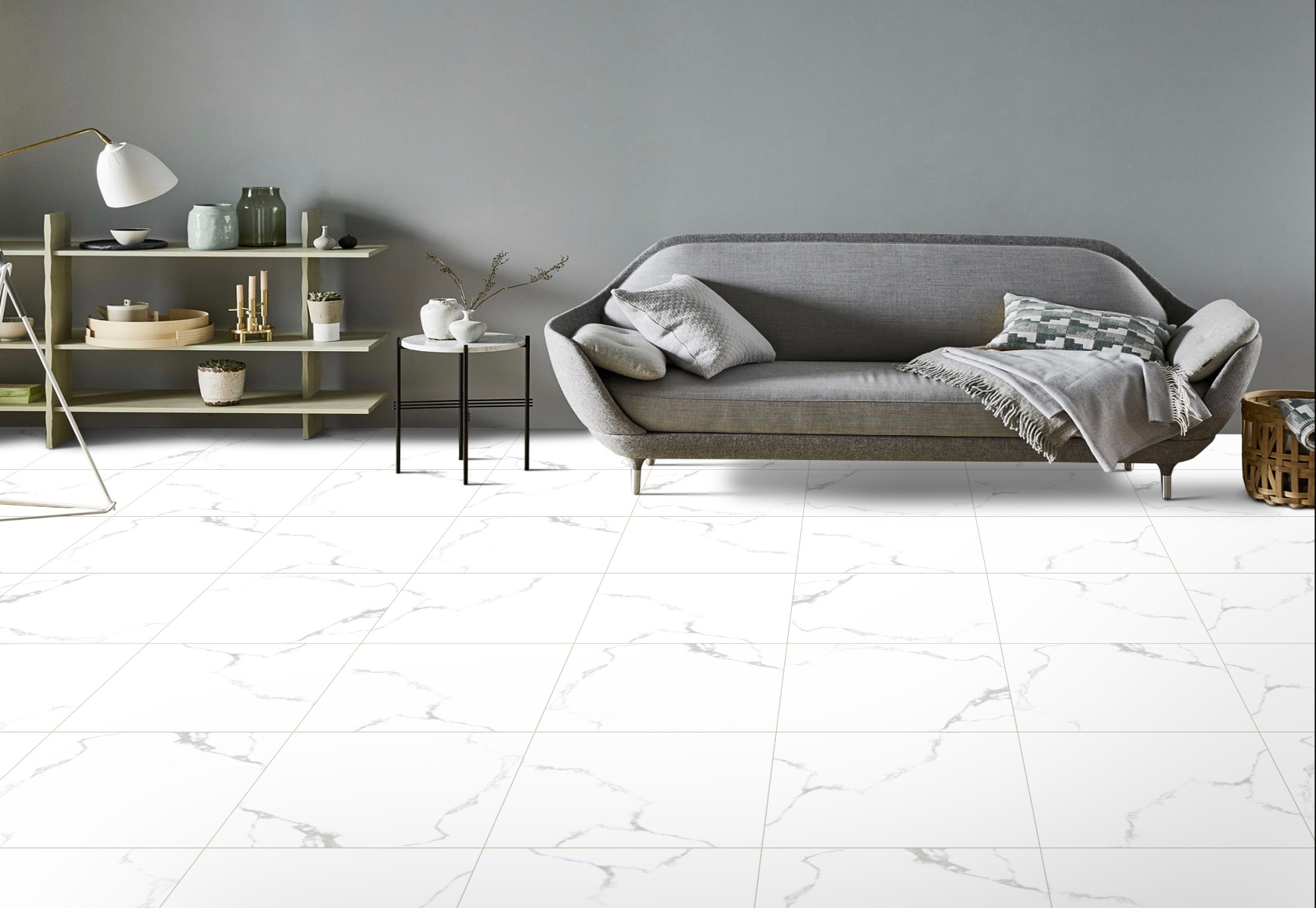Ακόμα μια επιλογή σε λευκό πλακάκι με ύφος μαρμάρου, κατάλληλο για κάθε εσωτερικό και εξωτερικό χώρο.