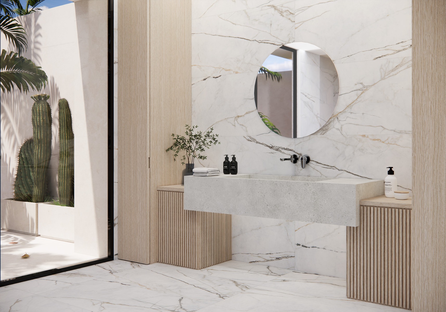 Η σειρά είναι εμπνευσμένη απο το φυσικό υλικό του μαρμάρου σε λευκό χρώμα και γήινες λεπτομέρειες. Η antislip R9 ιδιότητά της, την καθιστά κατάλληλη για τοποθέτηση σε εσωτερικό και εξωτερικό χώρο.
