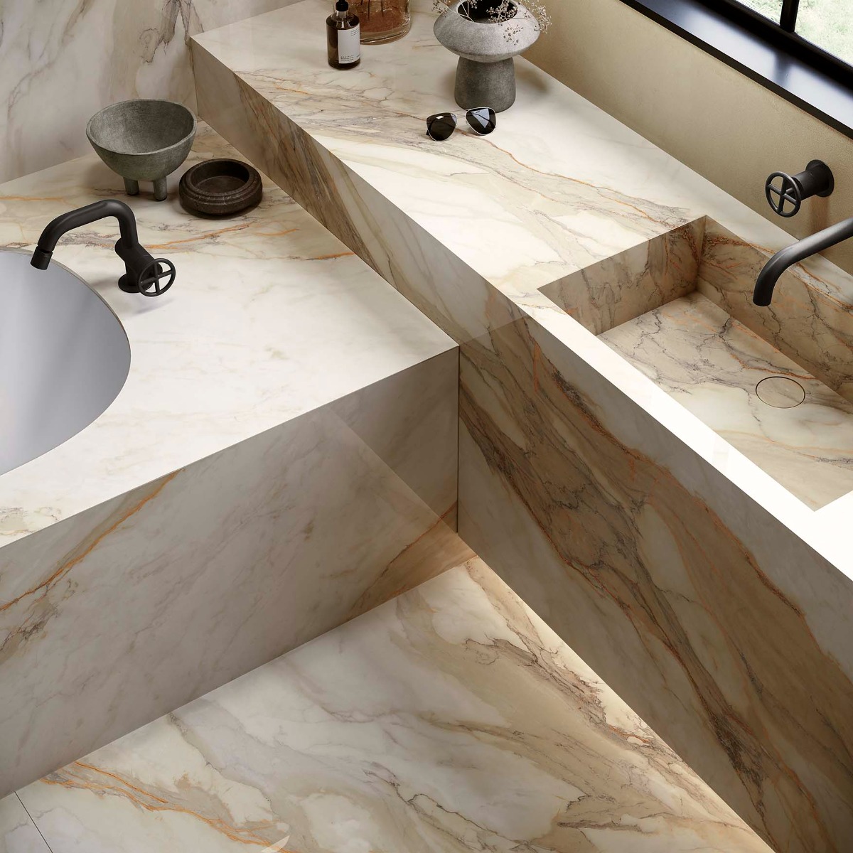 Επιφάνειες υψηλής απόδοσης και αισθητικής by Paravalos! Στην κατηγορία των XL επιφανειών τα υλικά της INFINITY δεσπόζουν. Επιφάνειες κατασκευασμένες από φυσικά μέταλλα και πρώτες ύλες. Αυτά είναι τα ίδια συστατικά του γρανίτη, τα οποία συντήκονται σε θερμοκρασία 1230 °C για να δημιουργήσουν ένα νέο συμπαγές και αδιάβροχο υλικό. Σε ύφος μαρμάρου με σατίνε υφή, πάχος 6 mm και κορυφαία ποιοτικά χαρακτηριστικά, στην επιβλητική διάσταση των 160 x 320 cm, το Calacatta Hermitage A της Infinity Surfaces δημιουργεί εντυπωσιακές επενδύσεις σε τοίχους και δάπεδα όλων των χώρων της κατοικίας σας ή του επαγγελματικού σας χώρου.