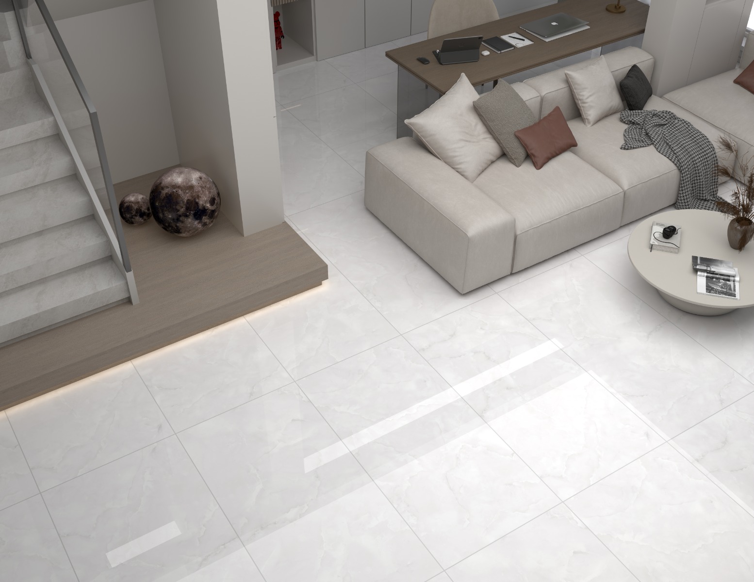 Γρανιτοπλακάκι κατάλληλο για τοποθέτηση σε δάπεδο ή τοίχο εσωτερικού χώρου, σε γκρι απόχρωση και ύφος μάρμαρου, γυαλισμένο σε διάσταση 60x120cm.