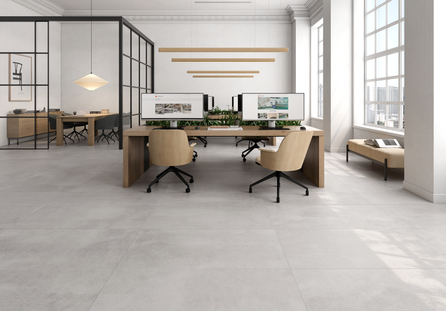 Ιδανικό για μοντέρνα ή βιομηχανικά (industrial) περιβάλλοντα. Σε γήινες αποχρώσεις αποχρώσεις Bone, Beige & Pearl και σε υφές ματ και R11.