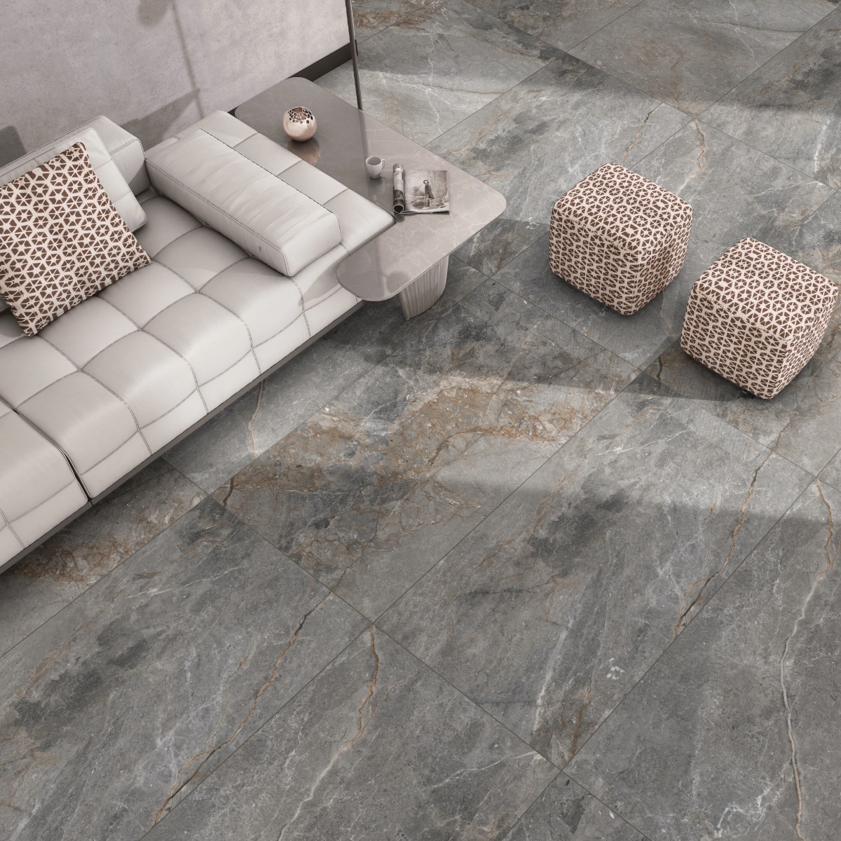 Πλακάκια από γρανίτη πρώτης ποιότητας, με γυαλιστερή υφή γκρι σε στυλ μάρμαρο, σε διάσταση 60x120cm. Ακόμα μια επιλογή σε πλακάκι κατάλληλο για κάθε εσωτερικό χώρο.