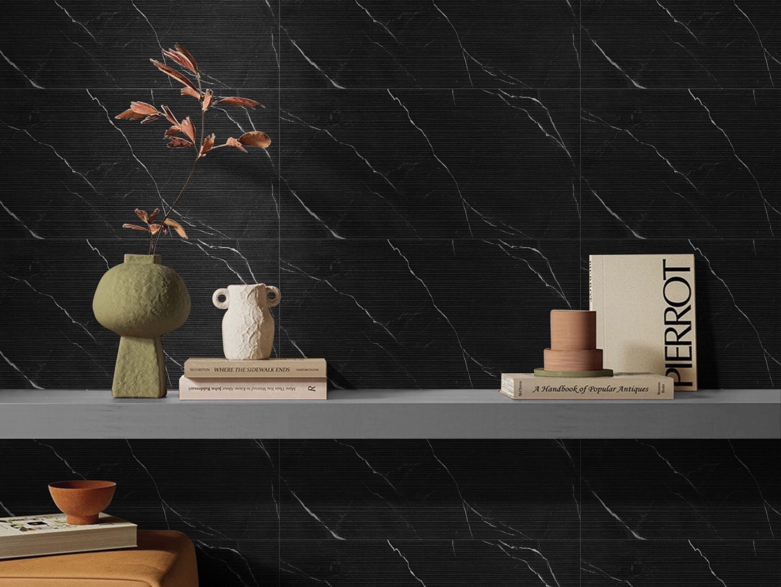 H σειρά Marquina σε στυλ μαρμάρου σε μαύρο χρώμα με λευκές λεπτομέρειες. Είναι μια δημοφιλής επιλογή για πολλές εφαρμογές στον χώρο του σχεδιασμού εσωτερικών χώρων, όπως δάπεδα, τοίχοι και επιφάνειες. Το μαύρο εντυπωσιακό χρώμα δίνει μια αίσθηση κομψότητας, ενώ ο μαρμαρίζον σχεδιασμός προσθέτει βάθος και πολυτέλεια.