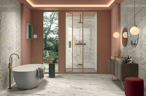 Ακόμα μια επιλογή σε πλακάκι με ύφος μαρμάρου, κατάλληλο για κάθε εσωτερικό χώρο.
