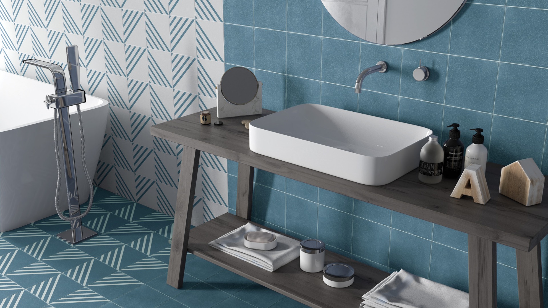Πλακάκι δαπέδου Boreal Dash White Blue Decor 18,5×18,5cm Ματ γρανίτης πρώτης ποιότητας.