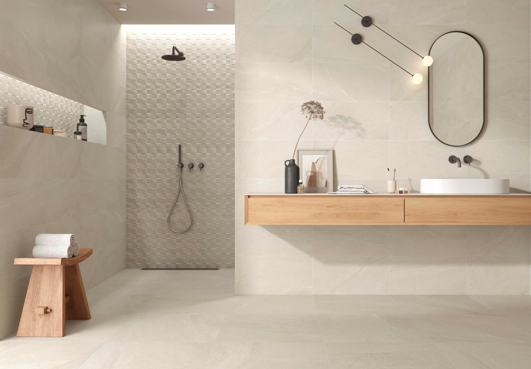 Παράλληλα διατίθεται και συνδυαστικό ανάγλυφο decor πλακάκι που δημιουργεί ένα τρισδιάστατο εφέ δίνοντας όγκο και κίνηση στις επιφάνειες που τοποθετείται.
