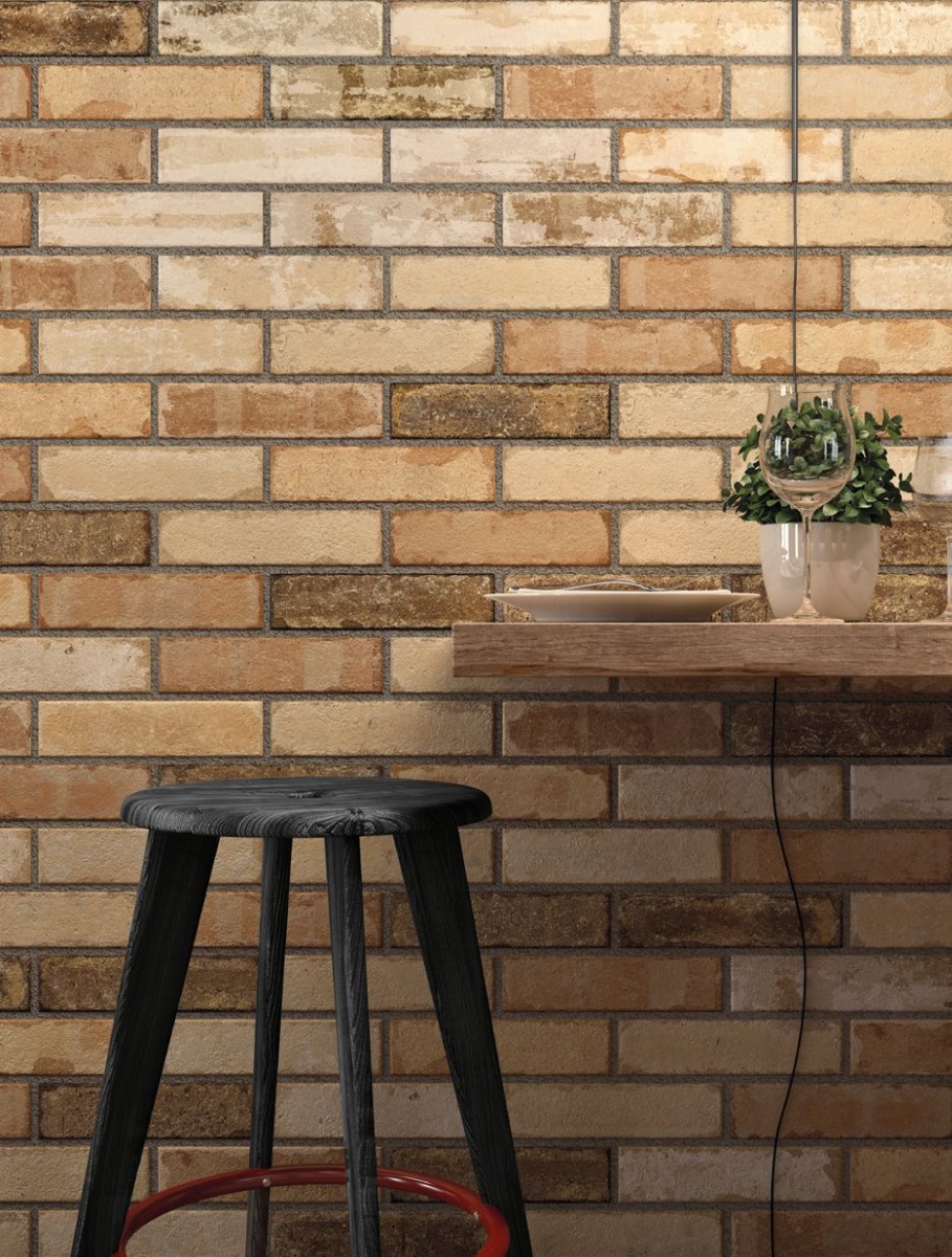 Η συλλογή BrickLane ερμηνεύει τη σύγχρονη αισθητική για την ανακαίνιση κτιρίων, εστιάζοντας στο διακοσμητικό υλικό: Τουβλάκι / brick, διαστάσεων 7,5×30εκ. (3”x12”).