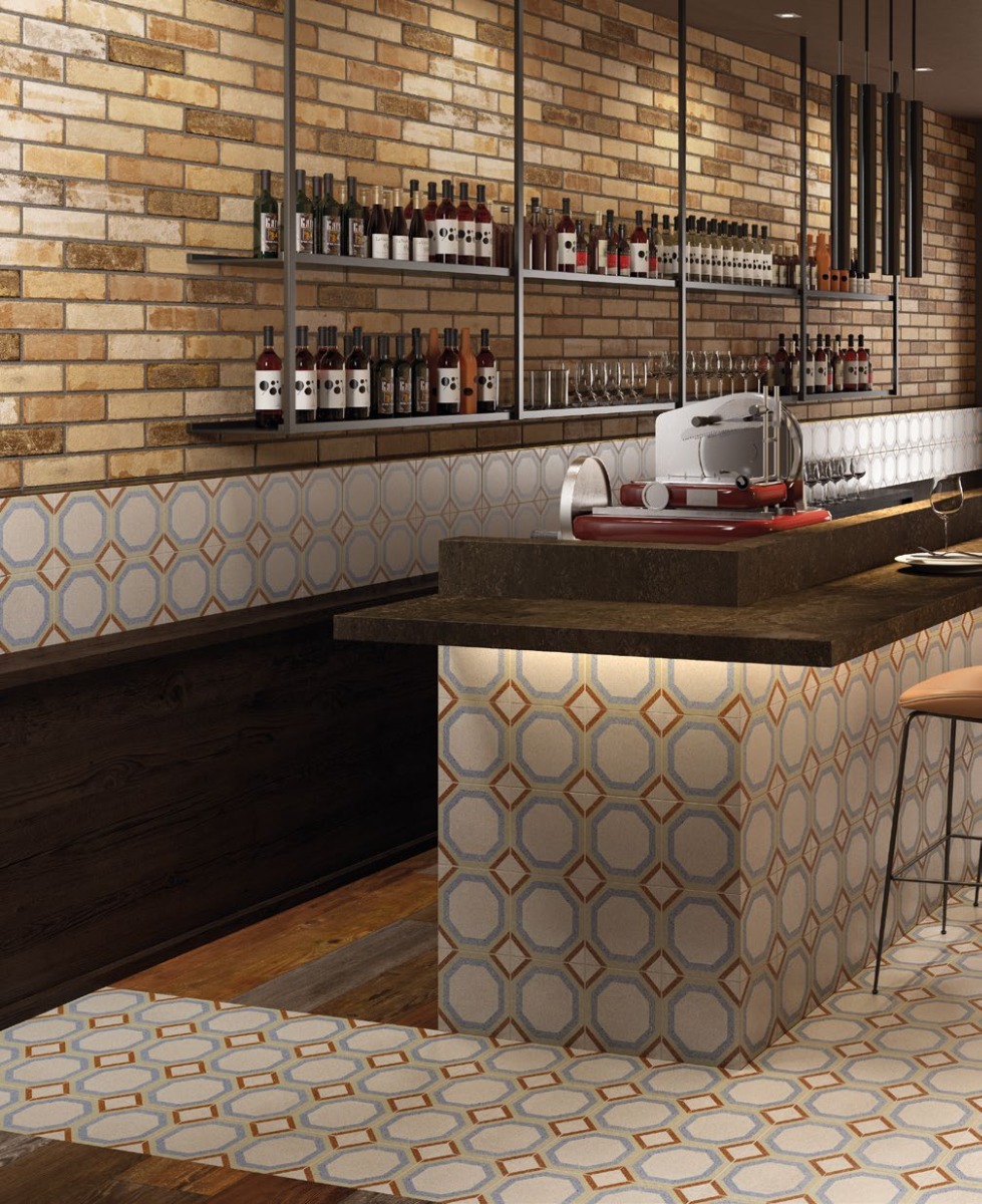 Η πρόταση ολοκληρώνεται από τη διακόσμηση, με υψηλή μεταβλητότητα γραφικών, που προσομοιώνει τη μονιμότητα ενός παλιού σοβά στο τούβλο και από το “γωνιακό πλακάκι” κατάλληλο για χρήση σε κάθε περίπτωση όπου ζητείται αυτό το είδος ειδικής επένδυσης “must have”.